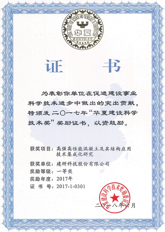 華夏建設科學技術獎一等獎