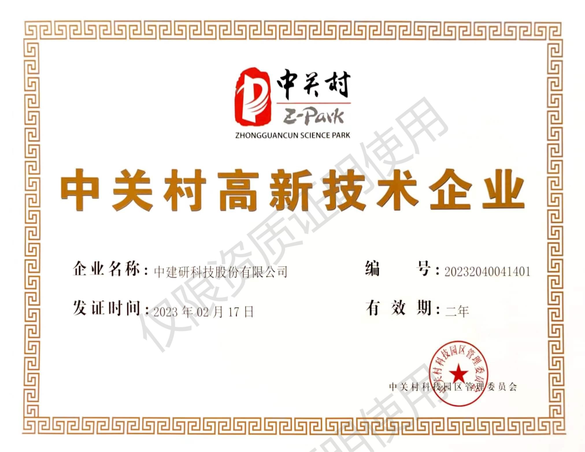 高新技術企業證書