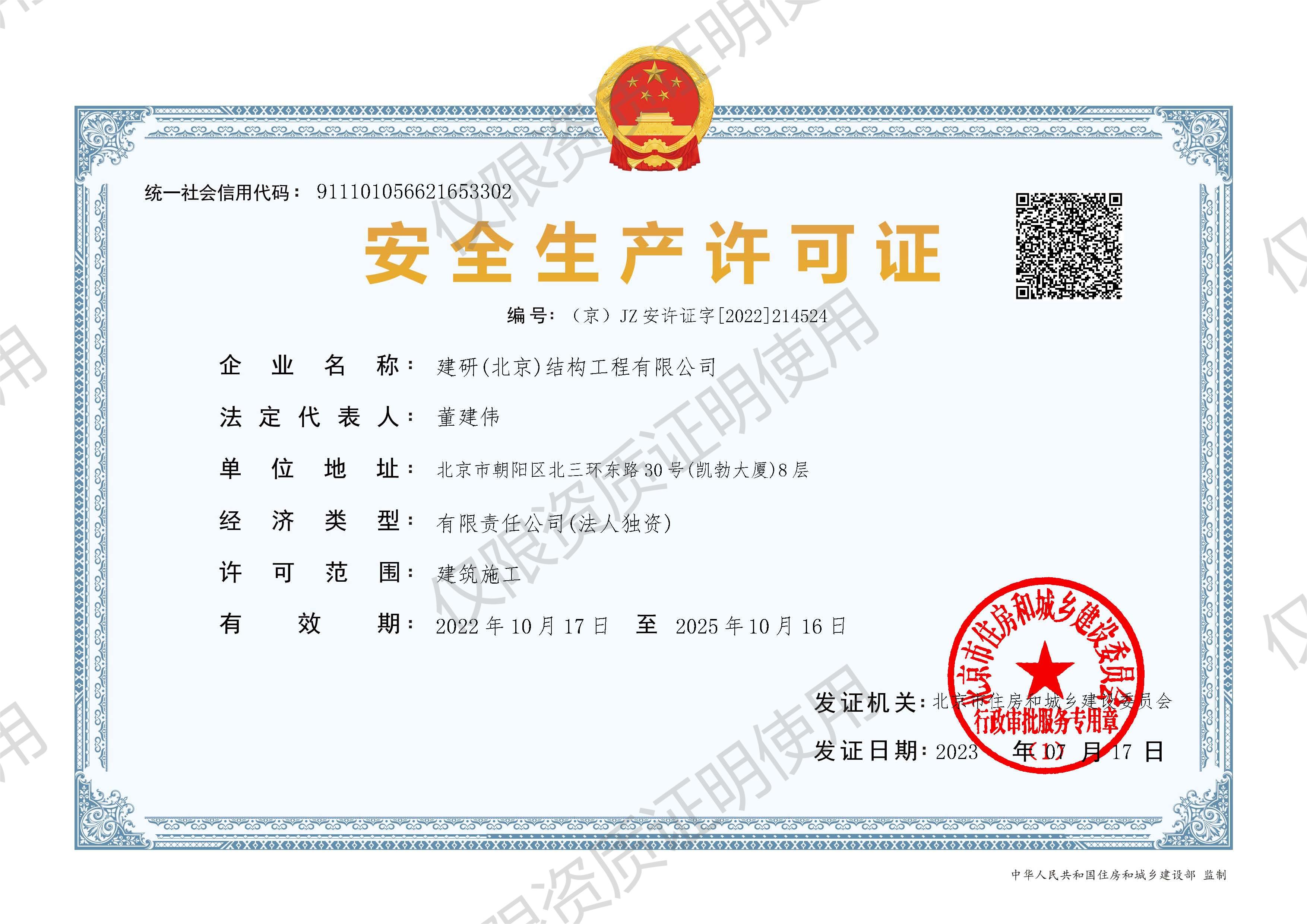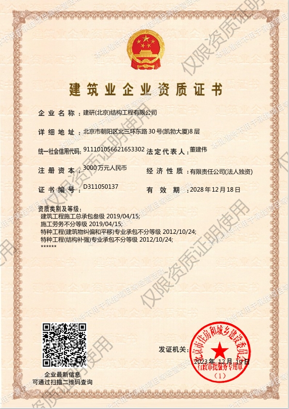 建筑工程施工總承包叁級資質證書