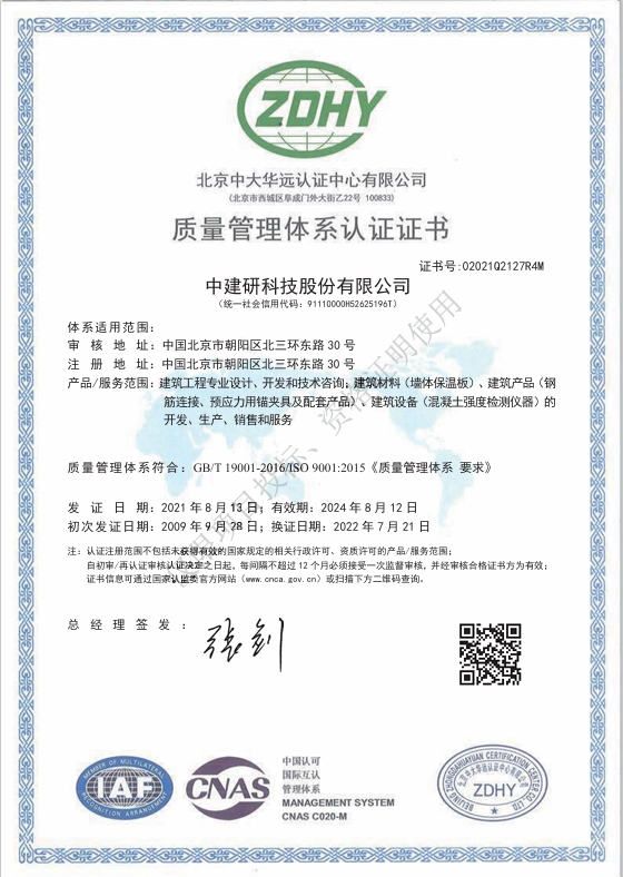質量管理體系認證證書
