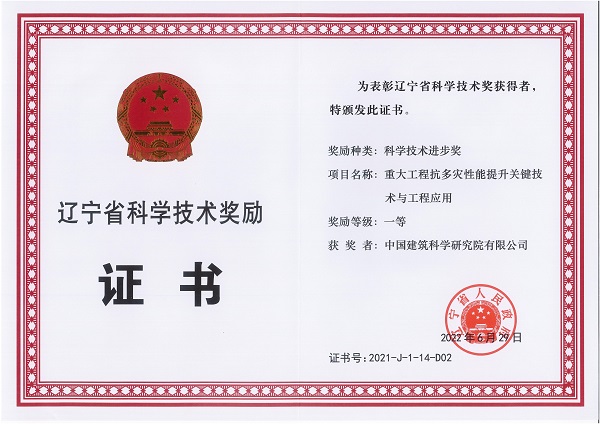 遼寧省科技進步獎一等獎