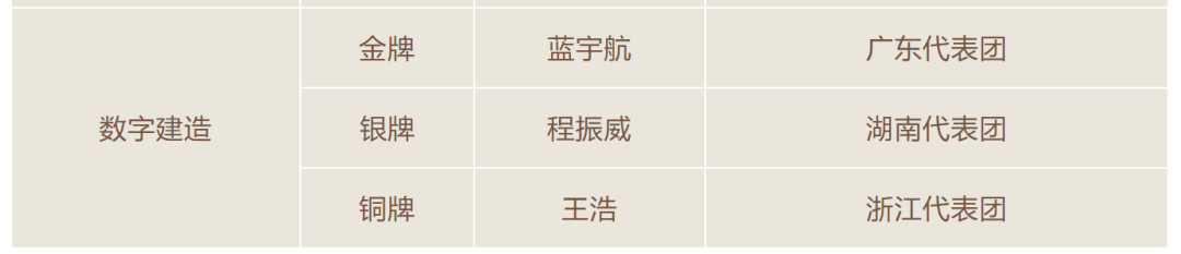 國產BIMBase平臺軟件作為國家級BIM賽事的指定比賽軟件,積極響應建筑高質量發展要求,為國產化BIM替代提供有力保障,為國家培養高質量信息化人才。構力科技祝賀各位參賽選手順利完成大賽、收獲榮譽!大賽對各競賽項目獲得前3名的選手,相應頒發金、銀、銅牌,選手排名不并列。對各競賽項目獲得前5名的選手(團隊雙人賽項前3名、三人賽項前2名),經核準授予“全國技術能手”稱號。世賽選拔項目作為第47屆世界技能大賽全國選拔賽,單人項目前5名、團隊項目前3名選手入圍第47屆世界技能大賽中國集訓隊。