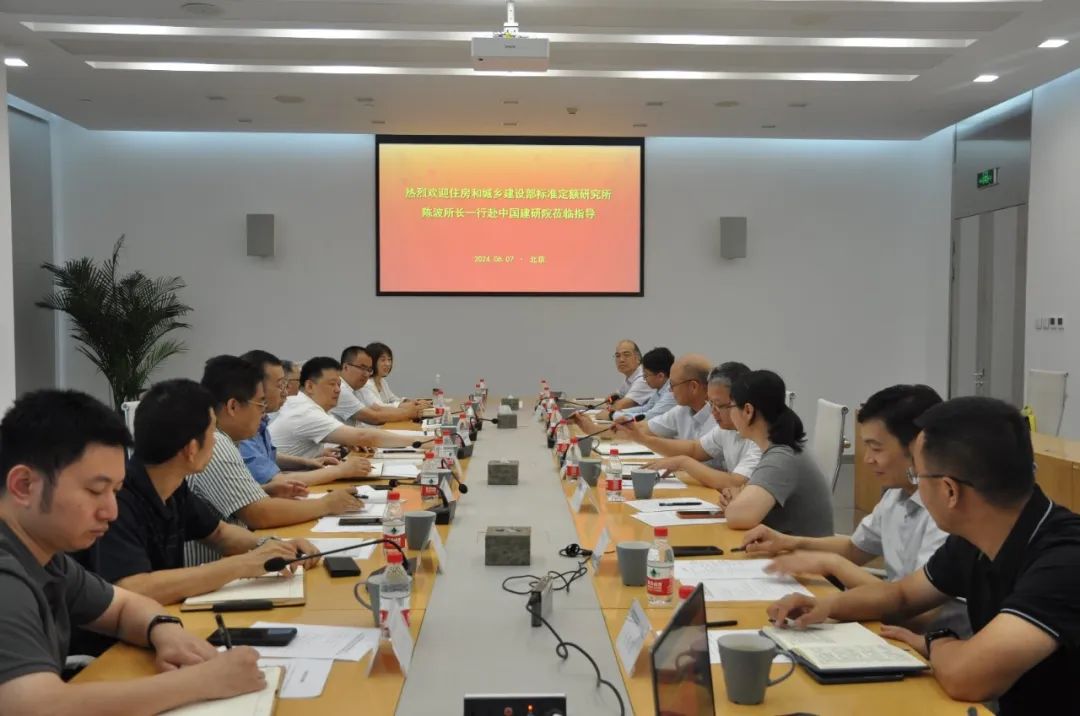 6月7日,住房城鄉建設部標準定額研究所陳波一行到中國建研院調研交流。標準定額研究所副所長施鵬、李大偉,城鄉建設產品標準處處長姚濤,信息出版處處長張宏,城鄉建設工程標準處副處長孫智、張惠鋒,以及有關部門負責同志參加調研,中國建研院黨委書記、董事長、總經理許杰峰,黨委委員、副總經理尹波,中建研科技黨委書記、董事長劉軍進,副總裁馬恩成等領導陪同調研。