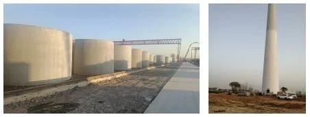 左:整體混凝土交付運營 ?右:灌漿后的混凝土風電塔筒