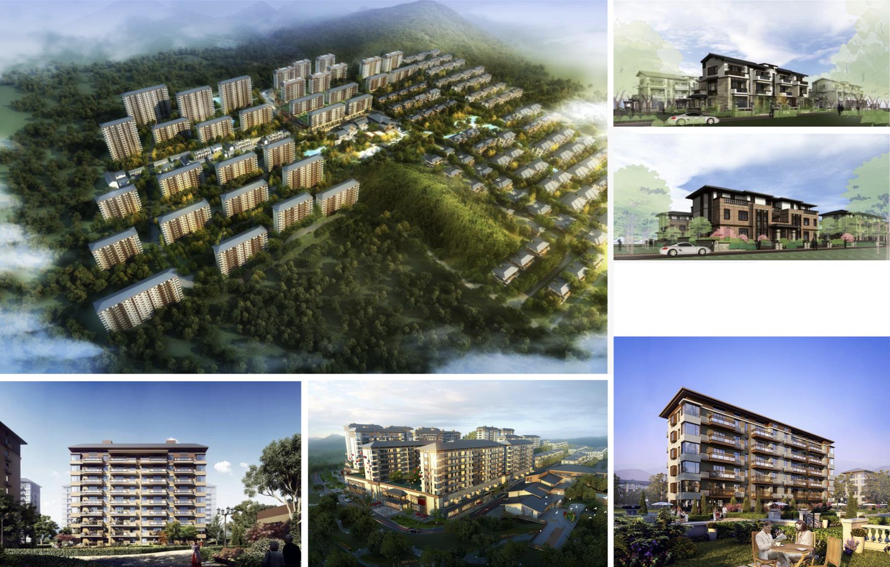本項目占地面積52300平方米,約78畝,新建住宅建筑28棟,紅線范圍內西低東高,北高南低,然高差約16米。根據建筑類型,將場地劃分為西側洋房區和東側雙拼區,洋房區依據地勢劃分為69米和74米兩個平臺,平臺內釆用院落式的布局形式,形成若干組團,組團內部營造溫馨靜謐的小環境,給住戶帶來領域感和安全感,給鄰里交往和戶外活動提供良好的空間,非常符合現代人交流的心理需要。組團之間形成開闊的視覺通廊,可觀賞整個區域的美麗景致;雙拼區依據地勢自北向南,自西向東,建筑沿宅間小路相互錯落,層層跌落,構造出豐富多樣的空間關系和富有變化的天際線。