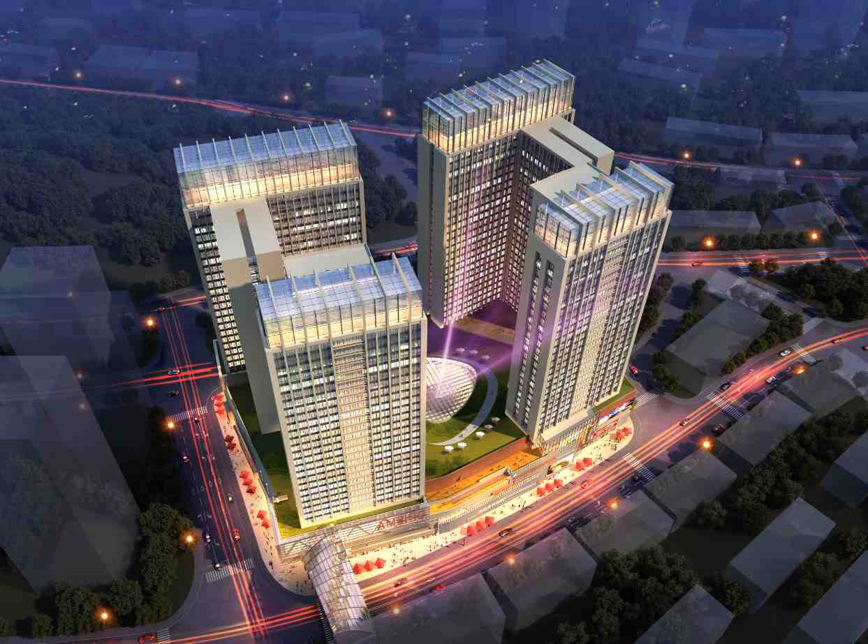 工作內(nèi)容:全過程改造設(shè)計(jì)。該項(xiàng)目改造前為四棟圍合式商貿(mào)綜合樓,地下一層,地上七層,建筑高度31.80m,改造前建筑設(shè)備設(shè)施老化,商業(yè)價(jià)值不足。改造后將現(xiàn)有建筑作為裙樓底商,在四角加建四棟110m高的酒店式公寓。